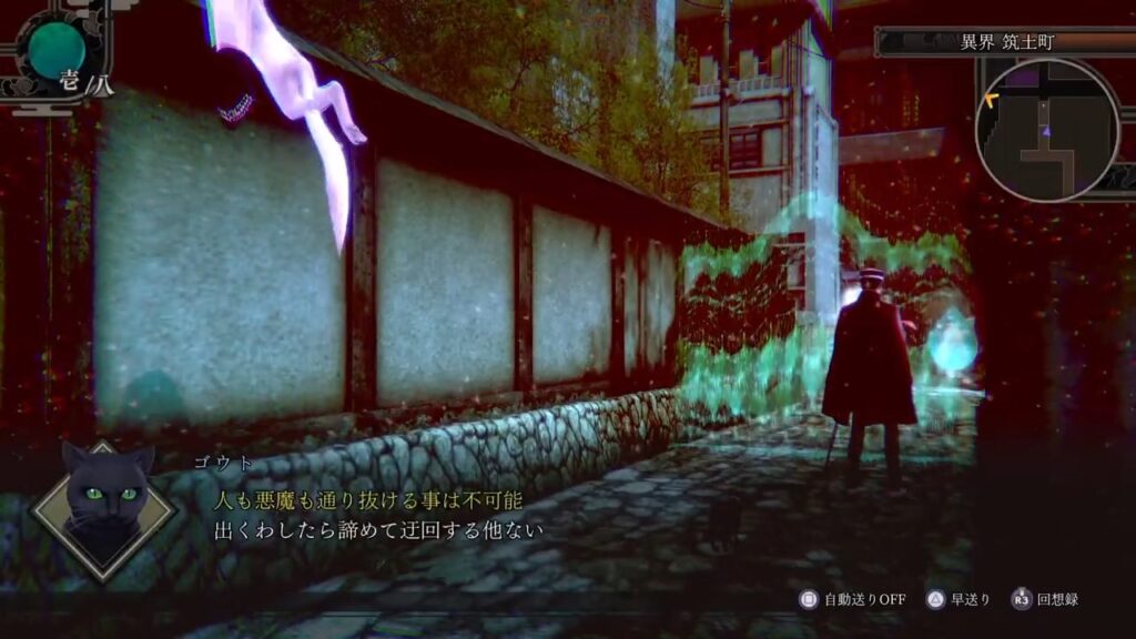 ヤタガラスの使者に話をして、異界開きをしてもらいます。そうすると、筑土町の異界へたどり着きます。