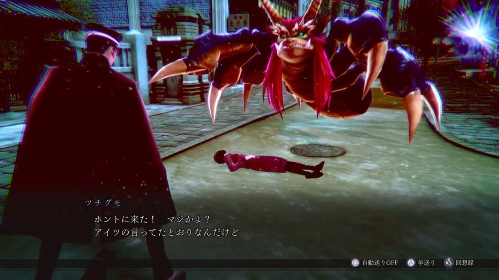 ツチグモを倒すと、リンさんは無事元の世界に戻っていったようです。ライドウ達も右の方に見える白い光みたいなのから現実に帰ります。次回は、現実に戻ったリンさんから詳しい話を聞いてみましょう。