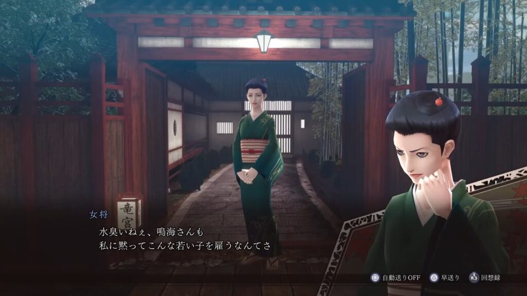 女将さんって何か色々知ってそう(意味深)なので、赤マントの写真を見せたりしつつ聞き込みしてみます。すると、やはり料亭だけあって大道寺清のことを知っていました。以前はよく来ていたようですね。どうやら車夫の飯田さんという人と気が合うようで、飯田さんなら詳しいことを知っているんじゃないかと教えてくれました。その飯田さんという人は深川町に住んでいるとのこと。さっそく深川町へ行きます。