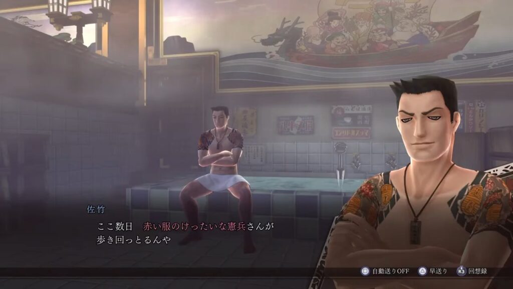 この人は関東黒羽組の佐竹さんというらしいです。彼はこの辺りのことを良く知っている様子。飯田さんの事を聞いたら、ドヤ街にいるということを教えてくれました。しかし…