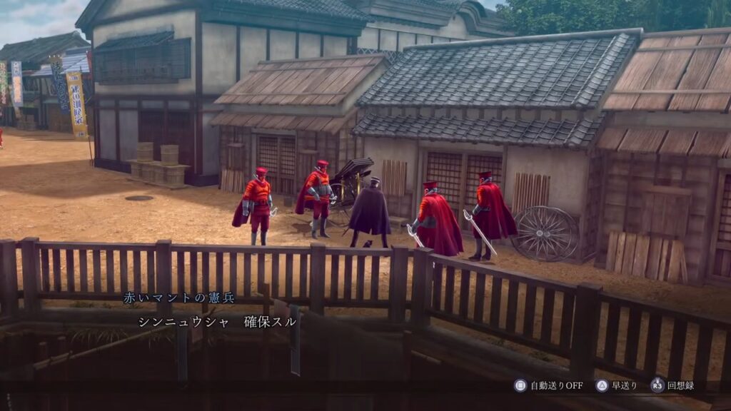 その赤い服のけったいな憲兵さんが赤マントの正体なんじゃね?という気がしなくもないですが。第壱話でも出てきた謎の兵隊ですね。あいつら本当に兵隊なんでしょうかね。なぜあの憲兵が深川にいるんでしょうね。謎しかない。飯田さんがあいつらのことを知っているかはちょっと分からないですけど、飯田さんのところにとりあえず行きましょう。