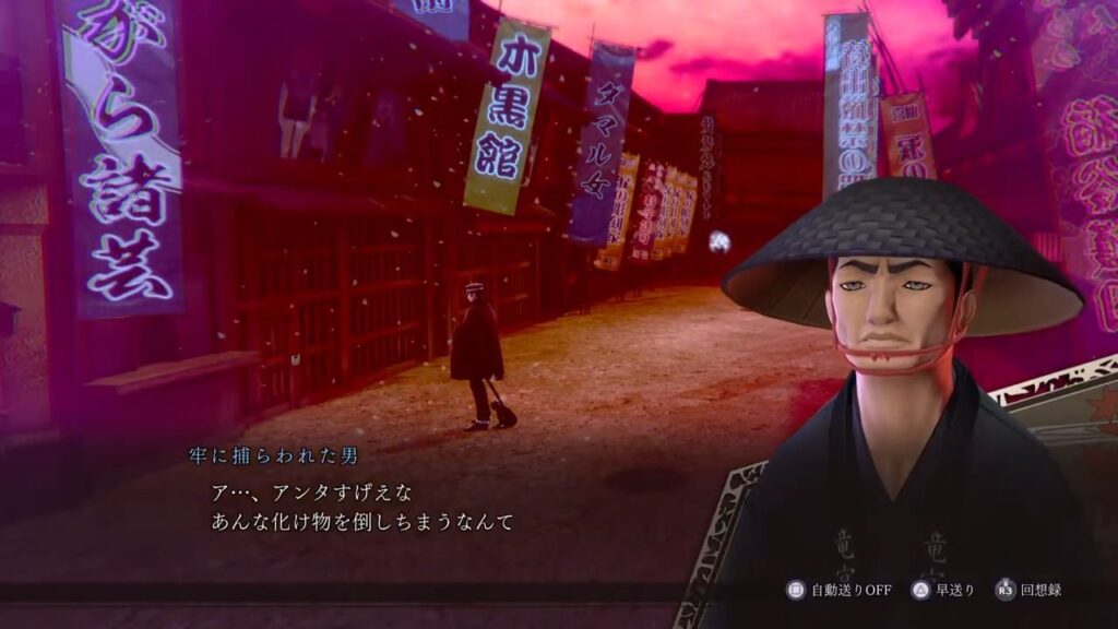 捕まったところ、異界に連れてこられました。ライドウを牢に入れようとしてきますが、もちろん抵抗します。すると、中に男が捕らえられていました。