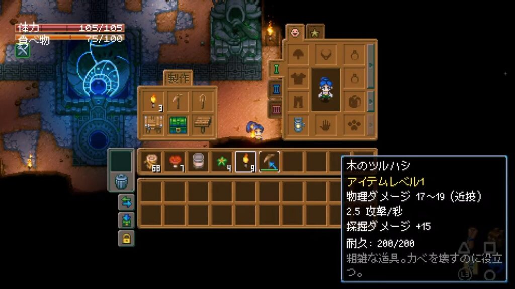 とりあえずこのオブジェ的なやつのことは放っておいて、とっとと道具をクラフトします。